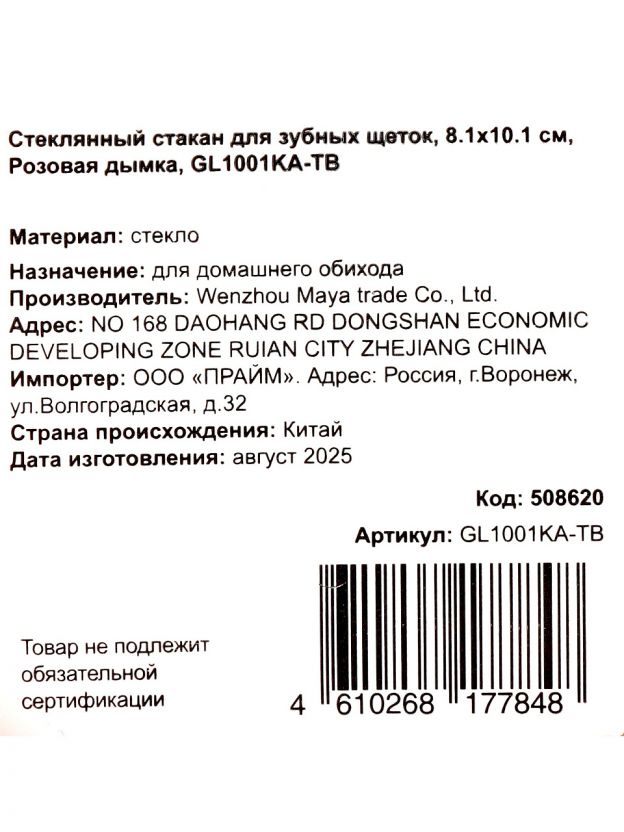 Стакан для зубных щеток, 8.1x10.1 см, стекло, Розовая дымка, GL1001KA-TB