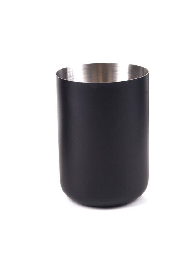 Стакан изготовлен из прочного металла с матовой поверхностью, устойчивой к влаге и коррозии. Размеры: 7.7x7.7x11 см.