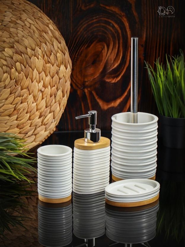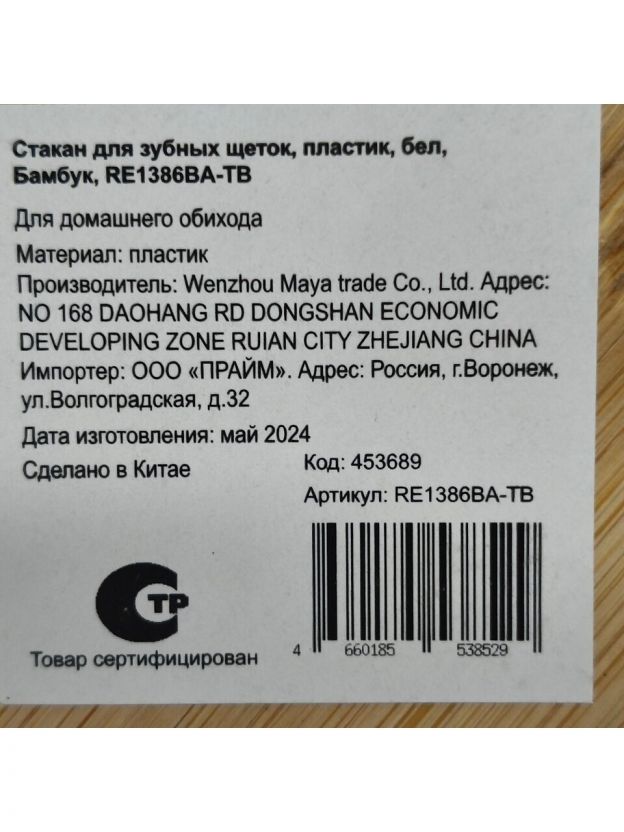Стакан для зубных щеток, пластик, белый, Бамбук, RE1386BA-TB
