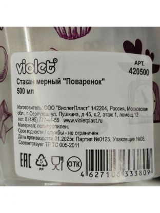 Стакан мерный 0.5 л, Violet, Поваренок, 420500