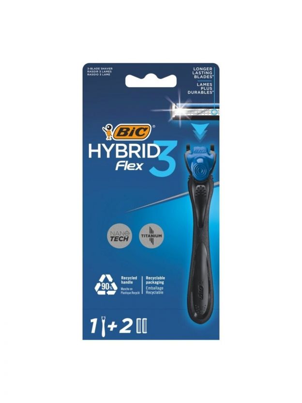 Станок для бритья Bic, Flex3 Hybrid, для мужчин, 3 лезвия, 2 сменные кассеты, 921449