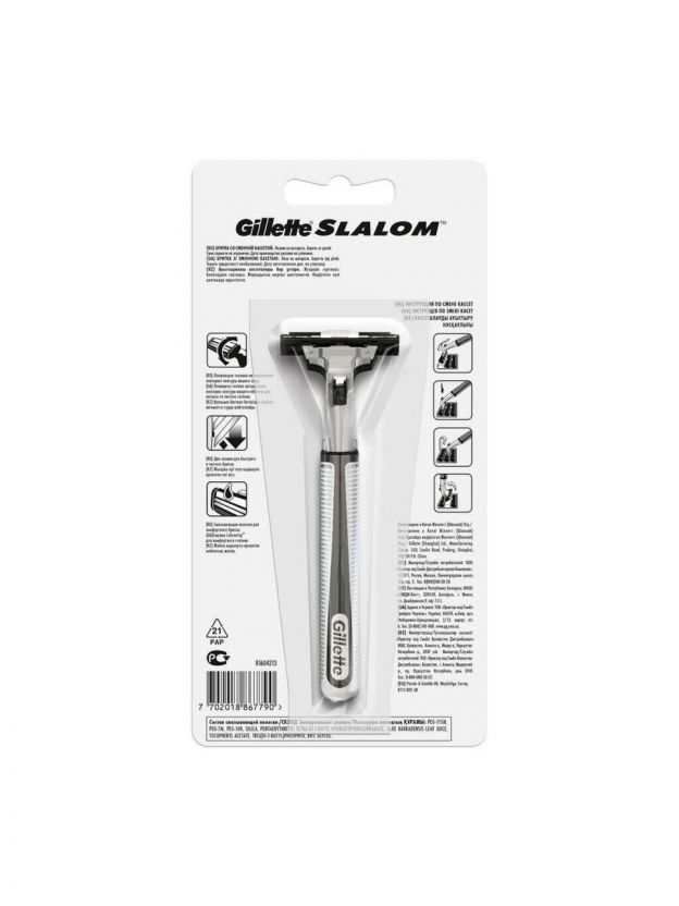 Бритва Gillette Slalom Plus оснащена плавающей головкой и двумя последовательно расположенными лезвиями, которые обеспечивают гладкое и точное бритье. Смазывающая полоска облегчает скольжение бритвы по коже. Удобная ручка со специальным покрытием поможет Вам контролировать движение бритвы. Характеристики: Тип: станок для бритья. Пол: для мужчин. Количество сменных кассет: 1. Количество лезвий: 2. Смазывающая полоска: с экстрактом алоэ вера и витамином Е. Преимущества: Плавающая головка следует за движениями и повторяет контуры лица. Полоска с витамином Е и алоэ вера обеспечивает глубокое увлажнение и защищает от раздражения и покраснений. Удобная нескользящая ручка со специальными насечками для точной фиксации в руке и полного контроля во время бритья. Процесс бритья еще никогда не был таким комфортным, как с Gillette Slalom Plus. Даже если Вы обладатель чувствительного типа кожи, Вам удастся по достоинству оценить качество бритья без раздражения. После использования Ваша кожа останется не только гладкой, но и увлажненной, и ей не потребуются дополнительные средства ухода.