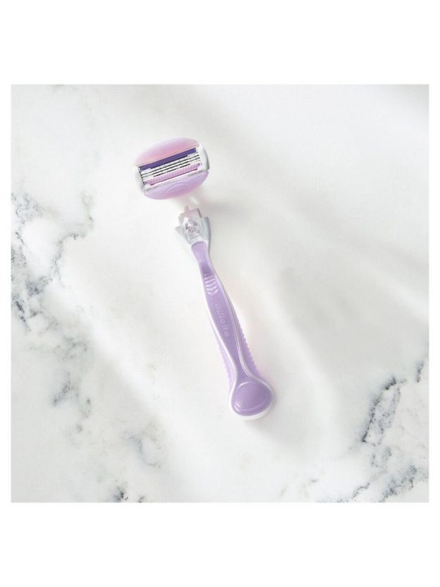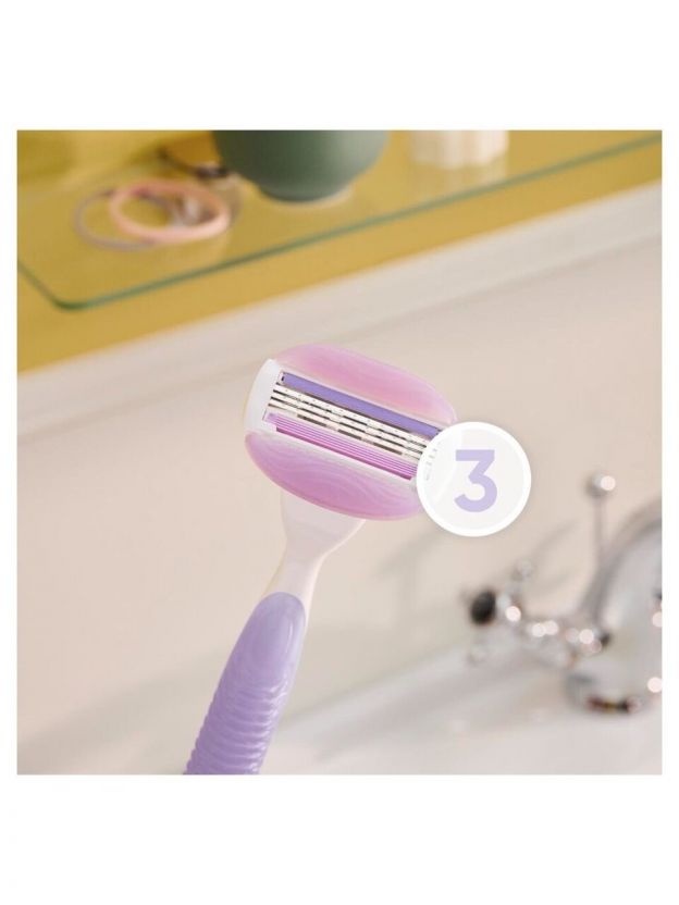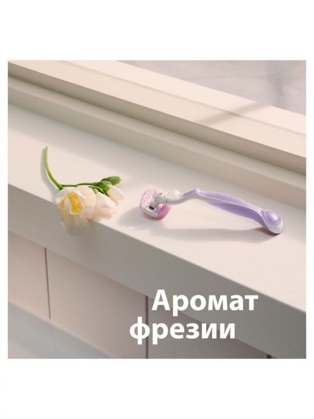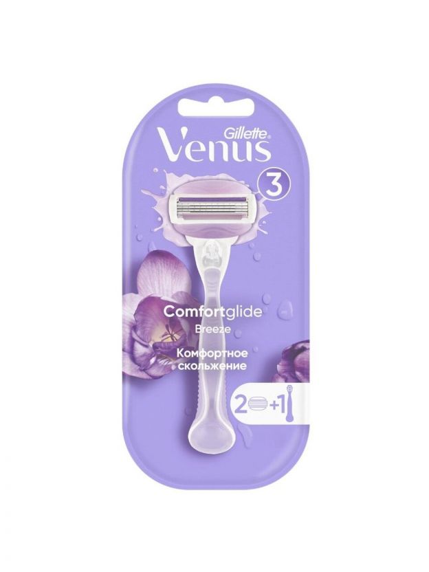 Подарите своей коже ощущение комфорта с женской бритвой ComfortGlide Breeze с ароматом фрезии. Три лезвия обеспечивают качественное бритье, делая кожу гладкой. Характеристики: Бренд: Gillette; Тип: станок для бритья; Количество лезвий: 3 шт; Материал: сталь; Вид бритвенного станка: многоразовый. Цвет: фиолетовый. Преимущества: Благодаря трем повторяющим изгибы тела лезвиям и разглаживающим кожу защитным подушечкам вокруг лезвий бритва обеспечивают гладкое и чистое бритье одним движением; Подвижные увлажняющие подушечки содержат легкие масла для тела, благодаря которым бритва плавно скользит по коже. Высококачественные материалы и привлекательный внешний вид обеспечат долгий и приятный срок службы бритвы Gillette Venus ComfortGlide Breeze.