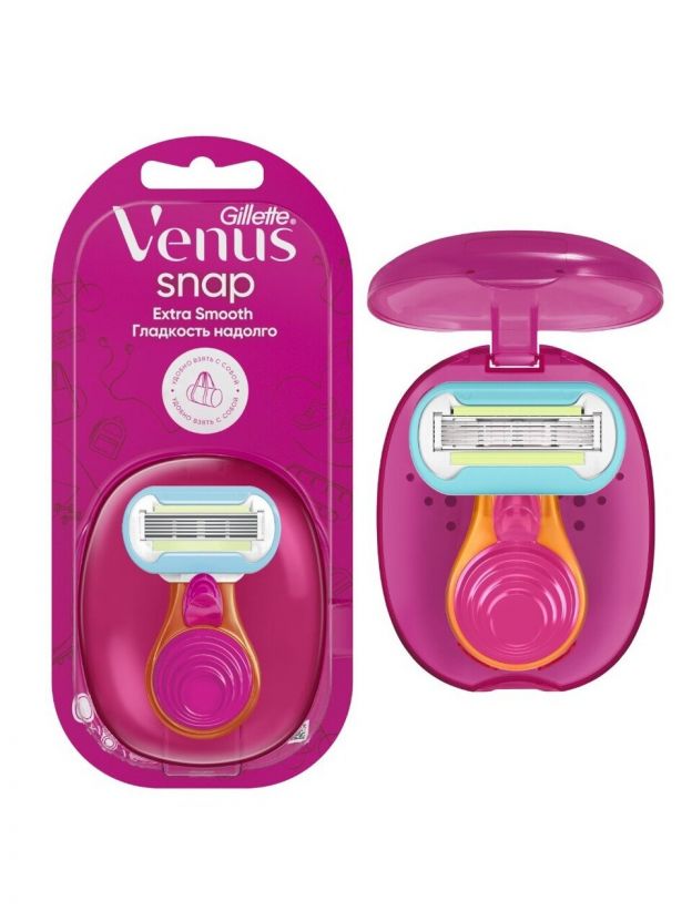 Женская бритва Venus Snap Embrace со сменной кассетой помогает удерживать влагу и дарит максимальное удовольствие от бритья. Это компактная модель, которая легко поместится в дамской сумочке, чемодане или спортивной сумке. Характеристики: Тип: бритва. Пол: женский. Цвет: розовый. Число лезвий в станке: 5 шт. Сменная кассета: 1 шт. Чехол в комплекте: да. Преимущества: Благодаря пяти лезвиям и увлажняющей полоске бритва обеспечивает невероятно гладкое бритье. Микрогребни приподнимают волоски и защищают кожу от порезов. Подходит к любым сменным кассетам Venus. Подарите себе мгновенную гладкость, где бы Вы не находились, вместе с миниатюрной бритвой Gillette Venus Snap. Лезвие скользит мягко и нежно. Даже если Вы обладательница чувствительного типа кожи, Вам удастся по достоинству оценить качество бритья без раздражения. После использования Ваша кожа останется не только гладкой, но и увлажненной, и ей не потребуются дополнительные средства ухода.