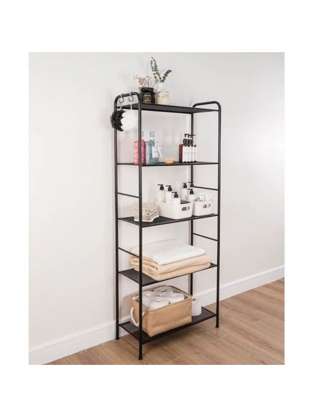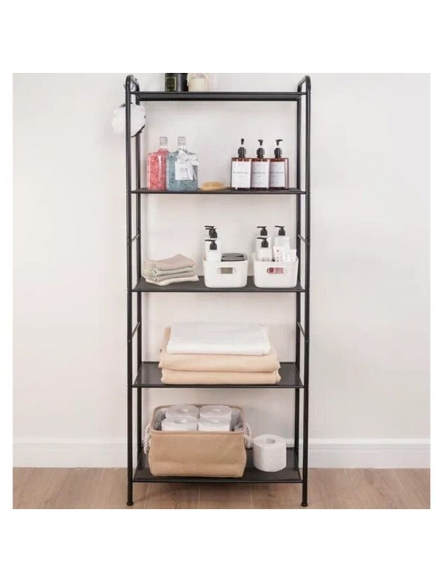 Стеллаж металл, пластик, 5 секций, 65.5х30х155.5 см, 5 полок, черный, ЗМИ, Валенсия, СТВ25 Ч