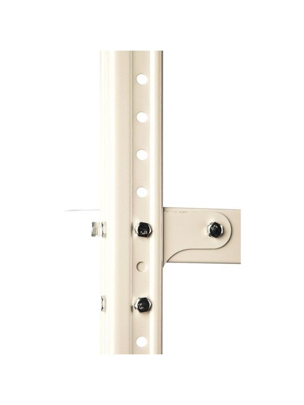 Металлический стеллаж выполнен из стальных материалов высокого качества. Поверхность конструктивных элементов стеллажа покрыта порошковой краской светло-серого цвета.