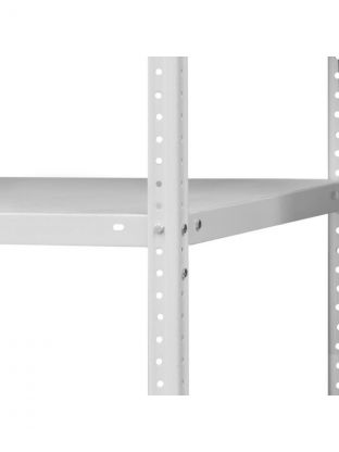 Металлический стеллаж МС-183 выполнен из стальных материалов высокого качества. Поверхность конструктивных элементов стеллажа покрыта порошковой краской светло-серого цвета. Конструкция стоек Металлического стеллажа МС-183 допускает монтаж полок на произвольном уровне. Технологические отверстия для крепления полок стеллажа расположены с шагом 25 мм.
