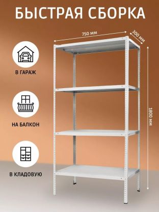 Стеллаж универсальный, металл, 4 секции, 75х30х180 см, ПАКС, МС-183, 2284842