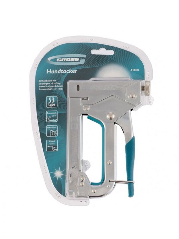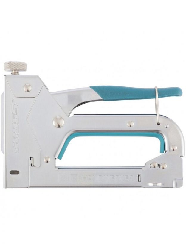 Мебельный регулируемый степлер,GROSS Handwerker 41000 изготовлен из прочной стали методом штамповки. Прост и удобен в обращении, не выскальзывает из рук в процессе работы. Широко распространен при сборке мебели, обивке мягких сидений, при фиксации утеплителя, пленки, картона, укладке напольных покрытий и выполнении багетных работ.