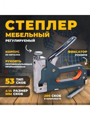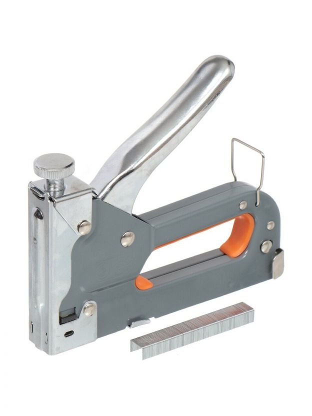 Степлер строительный предназначен для закрепления обивки мебели, укрепления плакатов, закрепления проволочной сетки и строительства теплиц. Модель снабжена регулировочным винтом для возможности оптимальной настройки силы удара и оснащена стопором рукоятки для удобного хранения и транспортировки. Для работы подходят скобы 53 типа.