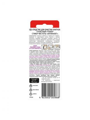 Стикер чистоты "Туалетный утёнок" "Гигиена и белизна: Лайм" обеспечит гигиену в ванной комнате и уничтожит даже самые опасные бактерии.