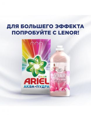 Порошок для стирки Ariel Аквапудра Color для цветных тканей превосходно и бережно отстирывает загрязнения на одежде даже в холодной воде и дарит белью приятный аромат свежести.