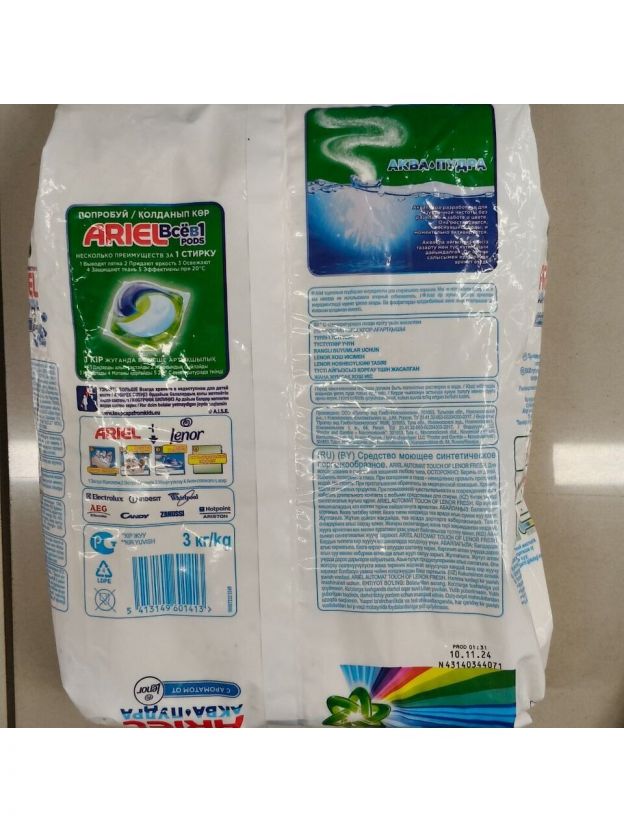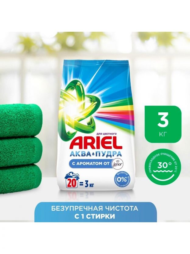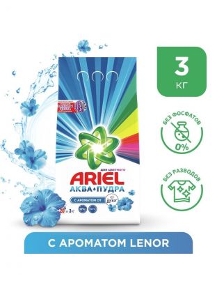 Стиральный порошок Ariel, 3 кг, автомат, для цветного белья, Ленор Эффект Воздушная свежесть