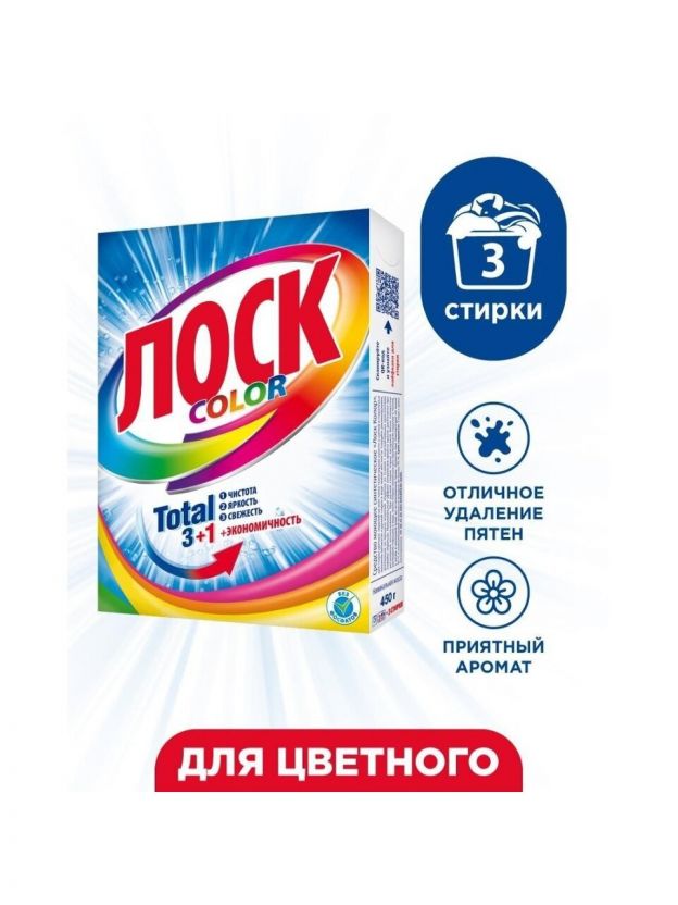 Стиральный порошок Лоск, 0.45 кг, автомат, для цветного белья, Color