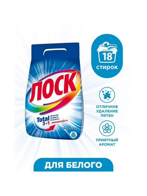 Стиральный порошок Лоск, 2.7 кг, автомат, для белого белья, Горное озеро