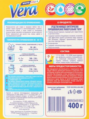 Стиральный порошок Vera, 0.4 кг, автомат, для цветного белья