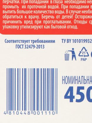 Порошок выпускается в картонной коробке весом 450 г, что удобно для хранения, транспортировки и использования дома, на даче или в поездках.