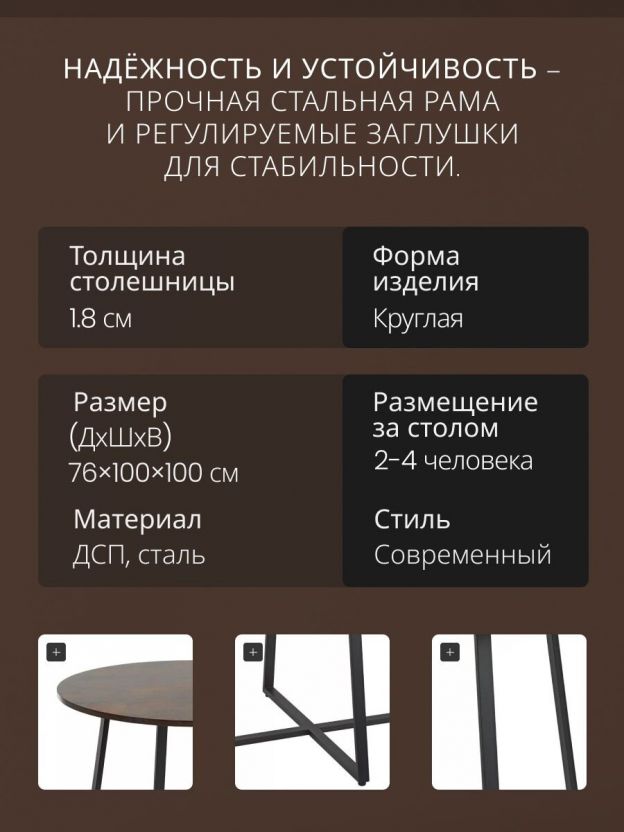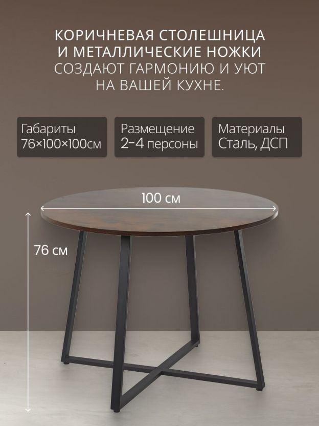 Стол обеденный 100х100х76 см, сталь, круглый, Лофт, KDT811B01