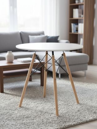 Обеденный стол 80х73 см, белый, МДФ, Фэшн, YTST-001d80-wht, создан для создания уютной атмосферы в доме. Его круглая форма позволяет удобно разместить от двух до четырех человек, обеспечивая комфортное пространство для общения и приема пищи. Белый цвет стола добавляет легкости и визуально увеличивает пространство, что особенно актуально для небольших кухонь и столовых.