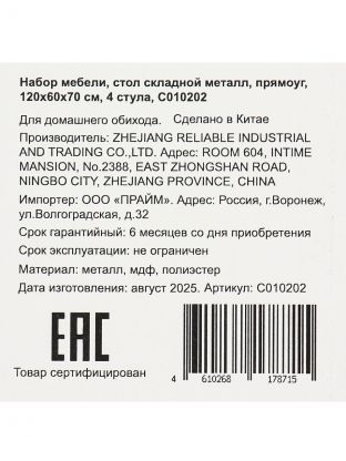 Складной стол из металла 120х60 см с 4 стульями: компактное решение для дачи, пикника и дома — удобство, прочность, экономия пространства.