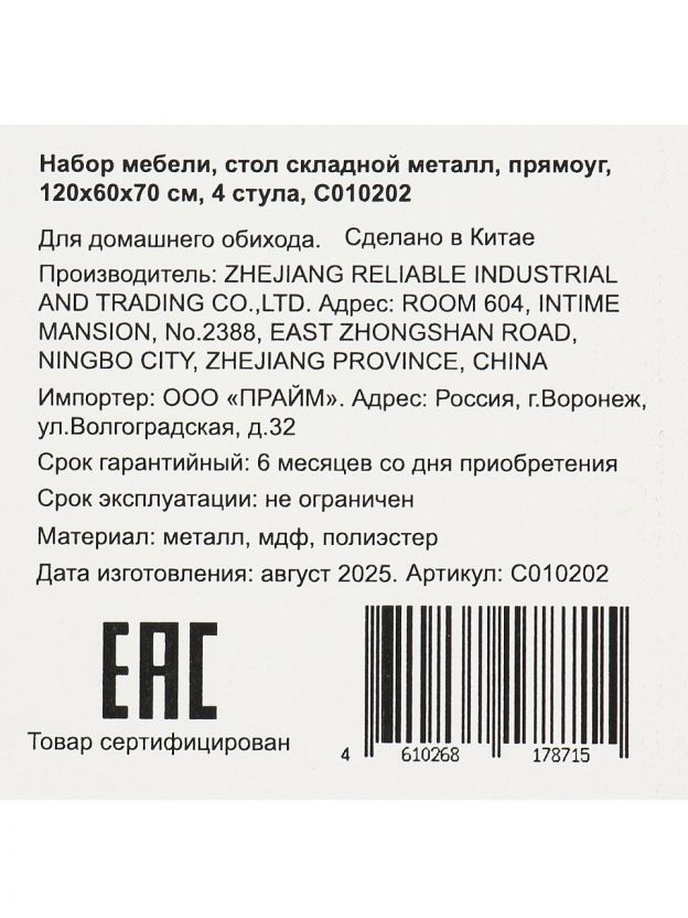Комплект легко складывается, занимает минимум места, удобно транспортируется. Идеален для хранения в багажнике, экономит пространство в доме и на даче.