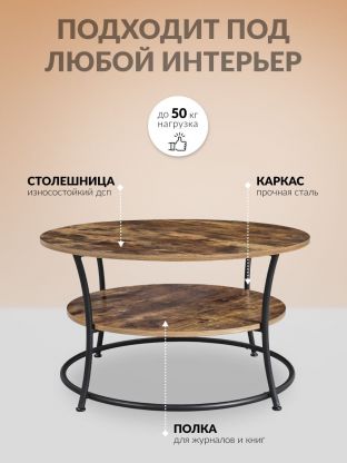 • Благодаря продуманному сочетанию износостойкой ДСП и прочной стали журнальный столик отличается устойчивостью и хорошей несущей способностью.