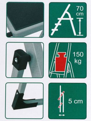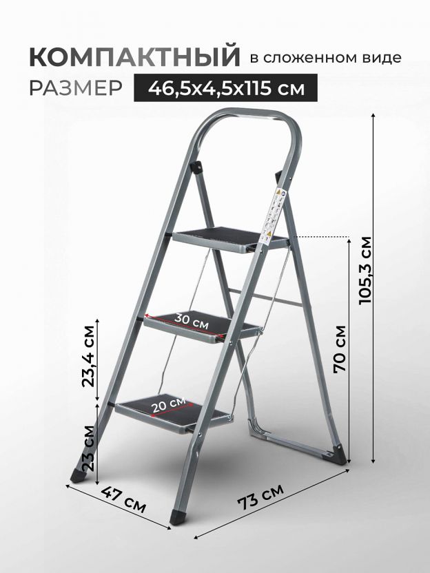 • Компактный размер. Стремянка не занимает много места при хранении. Благодаря этому, вы можете легко хранить ее в шкафу не занимая много места.