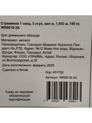 • Высокая нагрузочная способность. Стремянка может выдерживать нагрузку до 150 кг, что обеспечивает высокую степень безопасности при использовании. Вы можете спокойно стоять на ней и выполнять различные работы на высоте.