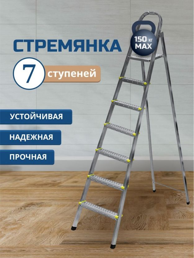 Стремянка 1 секция, 7 ступеней, металл, 1.54 м, 150 кг, Amigo, ЛС1007