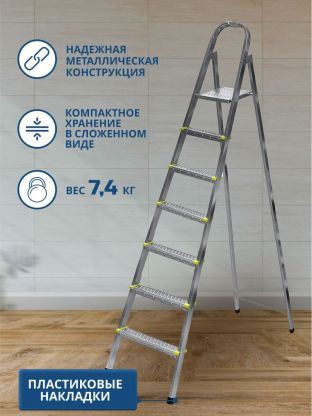 - 7 широких металлических ступеней, обеспечат удобство и безопасность подъема и спуска.