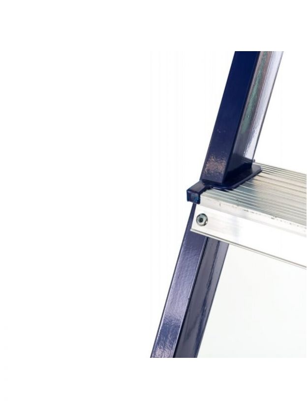 Тетивы стремянки выполнены из прочного стального профиля, защищенного от коррозии эпоксидной порошковой эмалью. Задняя и передняя нога соединены между собой. Рабочая площадка выполнена из оцинкованной стали. Ступени имеют рифленую поверхность и изготовлены из высокопрочного алюминиевого профиля. Башмаки изготовлены из высокопрочного пластика. Стремянка в рабочем положении надежно фиксируется рабочей площадкой, а начиная с пятиступенчатой и выше, страховочными ремнями.