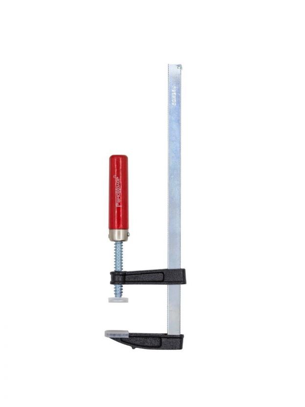 F-образная струбцина имеет вид рамы с подвижным элементом, движение которого и позволяет осуществлять фиксацию. Подобное оснащение определенно заинтересует профессионалов. Струбцина производится из качественных материалов.