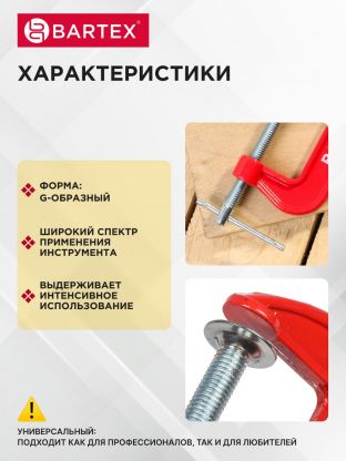 Струбцина G-образная, 75 мм, Bartex, 30023