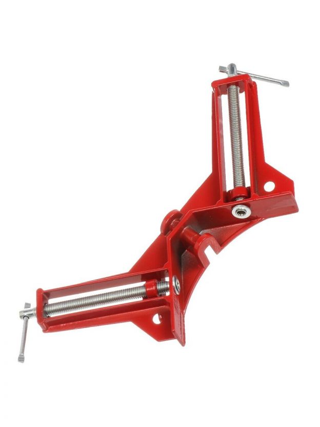 - Угловая струбцина подходит для использования в профессиональной деятельности и в быту, что делает ее универсальным инструментом для столярных, слесарных и монтажных работ.