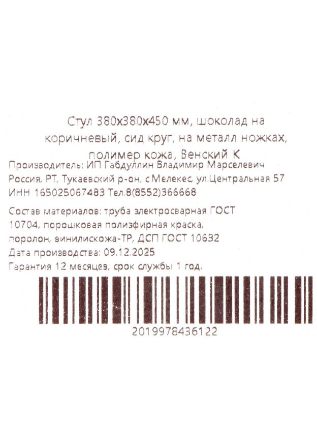 Стул Венский К 380х380х450 мм: современный дизайн, прочные металлические ножки и мягкое сиденье из полимерной кожи — комфорт для кухни, дома и дачи.