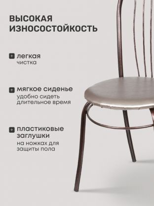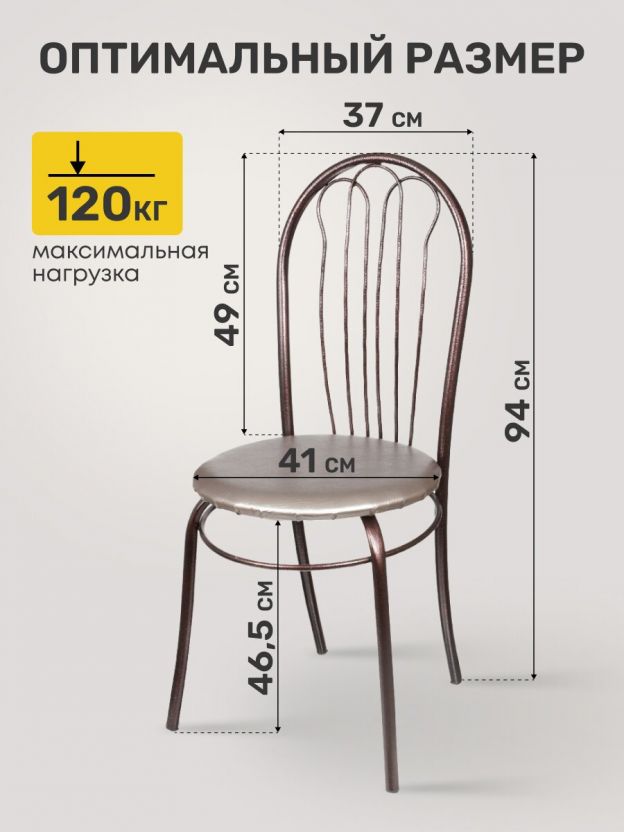 Стул рассчитан на нагрузку до 120 кг благодаря металлическому каркасу и креплению на болтах.