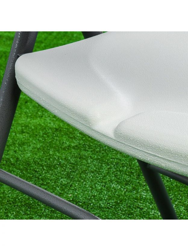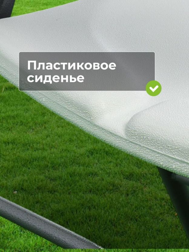 - Пластиковое сиденье и спинка обеспечивают комфортное использование стула. Они не нагреваются на солнце и не охлаждаются в холодное время года.