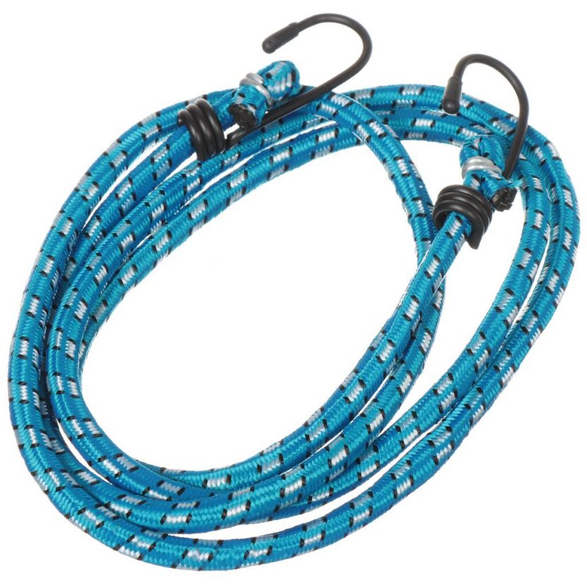 Стяжка изготовлена из прочного эластичного материала, который надежно удерживает багаж, не дает ему смещаться при резком торможении и предотвращает повреждение. Резинка дополнена оплеткой для износостойкости и металлическими крючками.