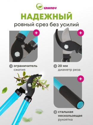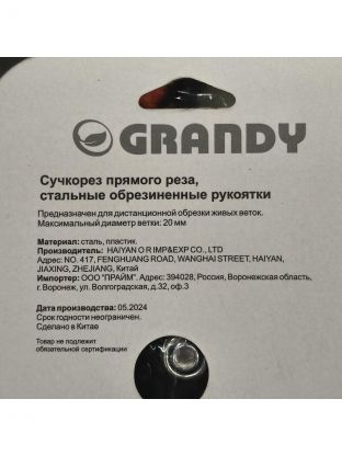Сучкорез 350 мм, прямого реза, Grandy, рукоятка сталь, резина