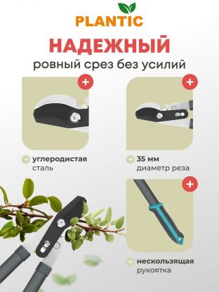 Плоскостной сучкорез Plantic является идеальным выбором для любого садовода или ландшафтного дизайнера, который ищет простой и эффективный способ обрезки крупных веток. Лезвия из углеродистой стали с антифрикционным покрытием обеспечивают чистый срез и препятствуют образованию коррозии, продлевая срок службы сучкореза.