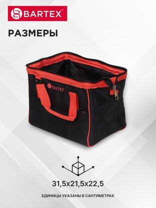 Сумка Bartex - идеальный помощник в тех случаях, когда ремонтные работы проводятся вдалеке от дома или привычного места хранения инструментов. Такой переносной аксессуар поможет Вам оптимизировать процесс ремонта и сократить время на поиски нужного инструмента.
