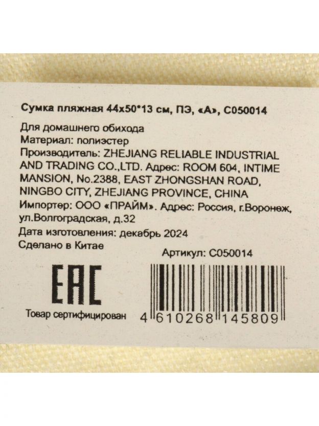 Пляжная сумка 44х50*13 см из прочного полиэстера – идеальный аксессуар для отдыха на пляже, пикника или летних прогулок. Вместительная модель "А" легко вмещает полотенца, одежду и необходимые вещи. Легкость ухода за материалом и современный дизайн делают изделие практичным выбором для активного образа жизни.
