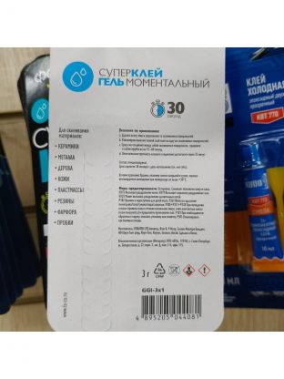 Супер клей ФАZА, однокомпонентный, 3 г, гель, моментальный, блистер, 5044081, GGl-3x1