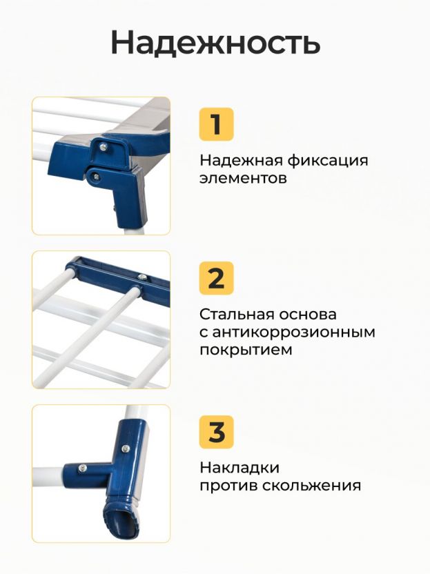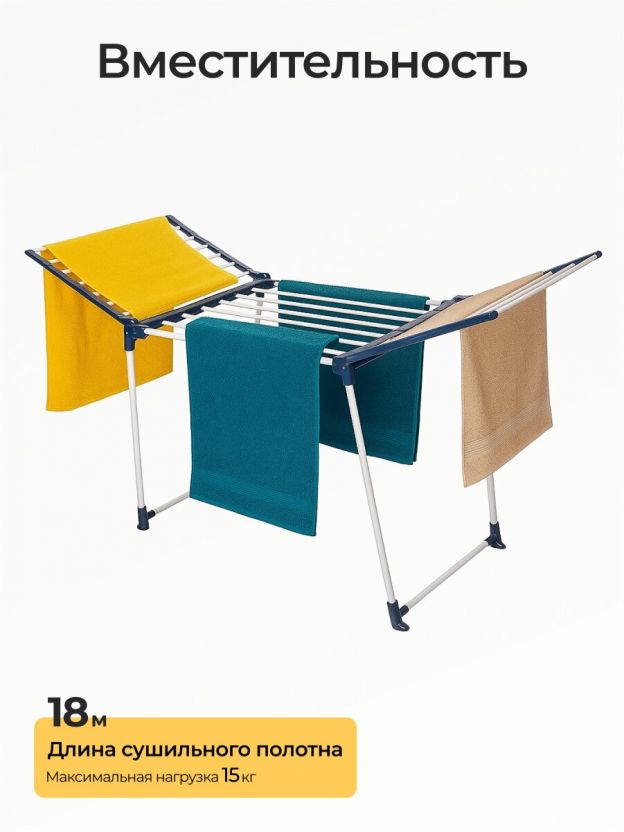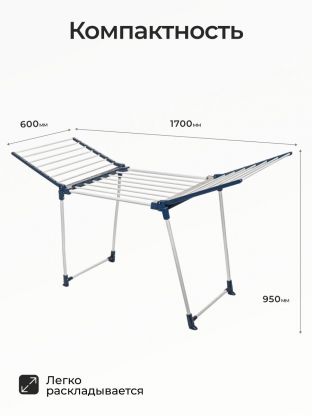 Сушилка для белья напольная 170х60х95 см, складная, 22 прута, синяя — максимум белья за раз, компактное хранение, идеальна для квартиры и дачи. Почему выбирают: 22 прута — вмещает до 2 полных стирок: сушите больше за один раз без тесноты Компактные размеры 170х60х95 см и складная конструкция — легко хранить даже в малогабаритных помещениях Подходит для дома, дачи, сезонного использования и подарка — универсальное решение для любой семьи Сушилка для белья напольная VPF06 — удобное и практичное решение для сушки одежды в домашних условиях, на даче или в квартире. Благодаря 22 металлическим прутьям вы сможете одновременно разместить большое количество вещей, включая постельное бельё и полотенца. Складная конструкция позволяет быстро убрать сушилку после использования, что особенно актуально для небольших помещений и балконов. Синие створки добавляют современный акцент в интерьер и делают сушилку заметной среди аналогов. Покупатели часто спрашивают: какой напольный вариант выбрать для семьи? Сушилка VPF06 оптимальна по соотношению цена/размер — она выдерживает ежедневное использование, не занимает много места и подходит для быстрой сушки как в городской квартире, так и на даче. В отличие от моделей с меньшим числом прутьев, эта сушилка ускоряет процесс, позволяя развесить больше вещей за раз. Нет механизма «гармошка», что упрощает конструкцию и увеличивает срок службы. Как использовать напольную сушилку? Просто разложите конструкцию, зафиксируйте створки и равномерно развесьте бельё — прутья расположены так, чтобы вещи быстро высыхали и не мялись. Подходит ли для сушки крупных вещей? Да, длина 170 см позволяет размещать простыни и покрывала без сложения. Оформляйте заказ на складную сушилку для белья по выгодной цене — получите универсальное решение для дома и дачи с гарантией качества и быстрой доставкой. Частые вопросы: Какой размер у напольной сушилки VPF06 и сколько она вмещает? Габариты: 170х60х95 см, 22 прута позволяют развесить до двух полных стирок белья одновременно. Подходит ли эта модель для дачи и сезонного хранения? Да, складная конструкция облегчает транспортировку и хранение, а универсальный размер делает сушилку удобной для любых условий — дома, на даче или в поездках. В чём отличие этой сушилки от аналогов с механизмом «гармошка»? Модель VPF06 не имеет сложного механизма, что делает её более долговечной и легче в эксплуатации. Прочные створки обеспечивают устойчивость даже при полной загрузке.