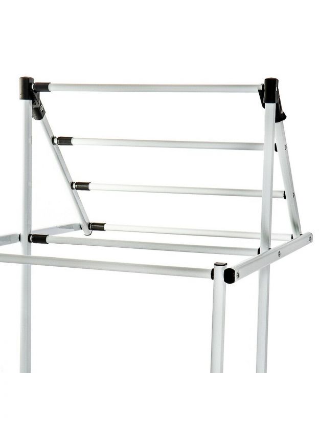 Сушилку легко сложить и убрать после использования — она занимает минимум места, её удобно брать на дачу или хранить в шкафу.