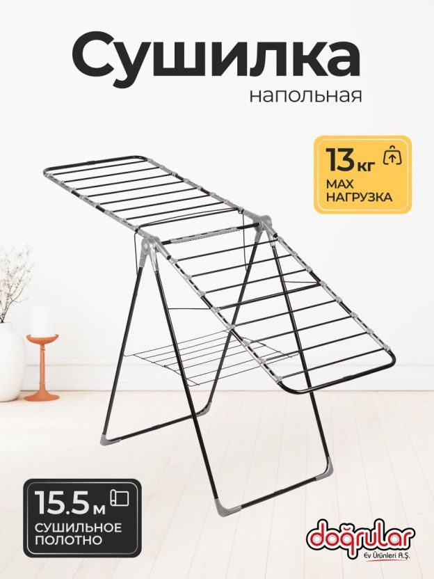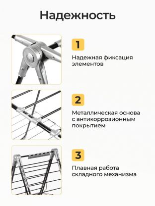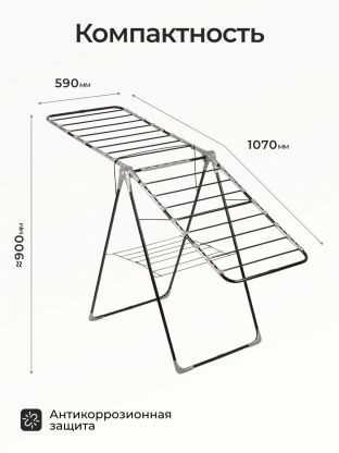 • Уникальное предложение: вместительная напольная сушилка с 16 прутьями и створками для максимального удобства сушки.