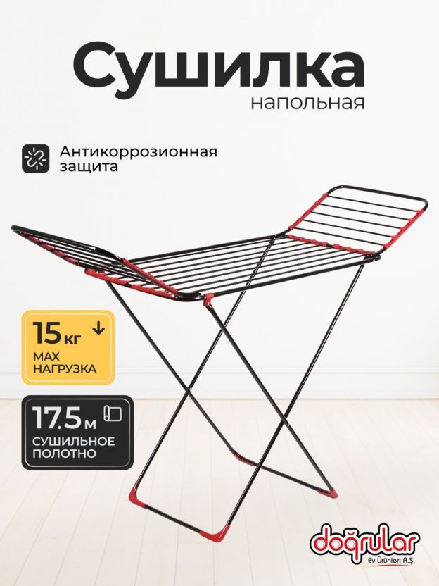 Сушилка для белья напольная, полотно 17.5 м, 132х53.5х6 см, складная, 18 прутьев, 15 кг, Dogrular, Адель