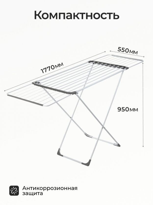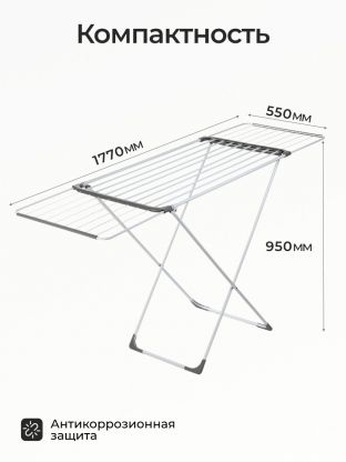 Сушилка для белья напольная, полотно 18 м, 109/177x55x95 см, складная, 24 прута, 18 кг, выдвижная, 142301