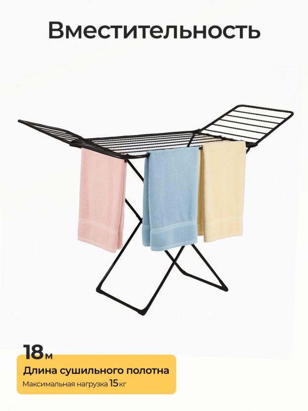Сушилка для белья напольная, полотно 18 м, 177х53.5х111.5 см, складная, 18 прутьев, 15 кг, черная, Nika, СБТ18/Ч