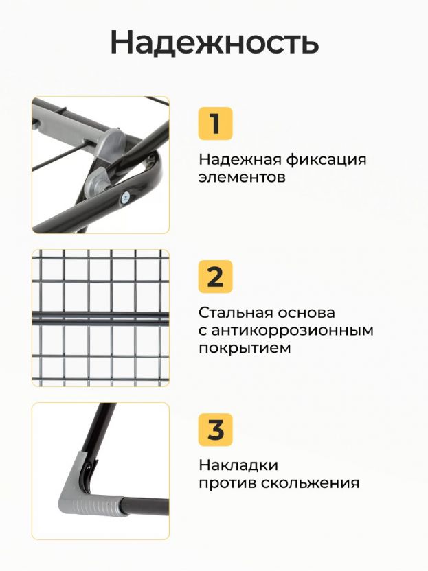 - Ультрапрочная стальная конструкция — выдерживает до 15 кг мокрого белья без деформации